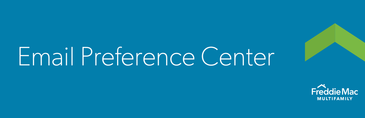 To unsubscribe from all Freddie Mac emails or just Multifamily emails, please enter your email address below, select your unsubscribe preference, and then click the unsubscribe button. Once you submit your request, you will receive one last email confirming that you have been unsubscribed.